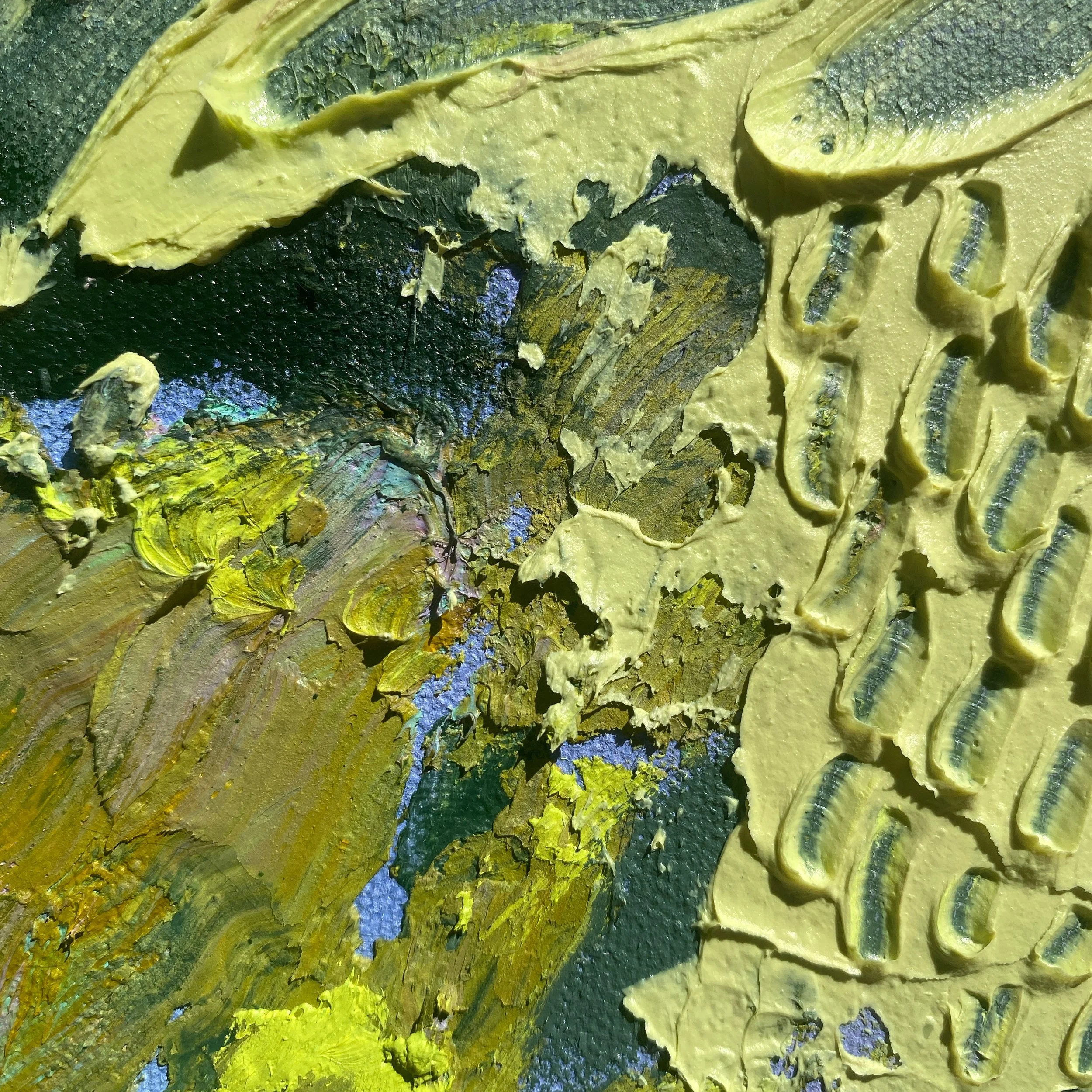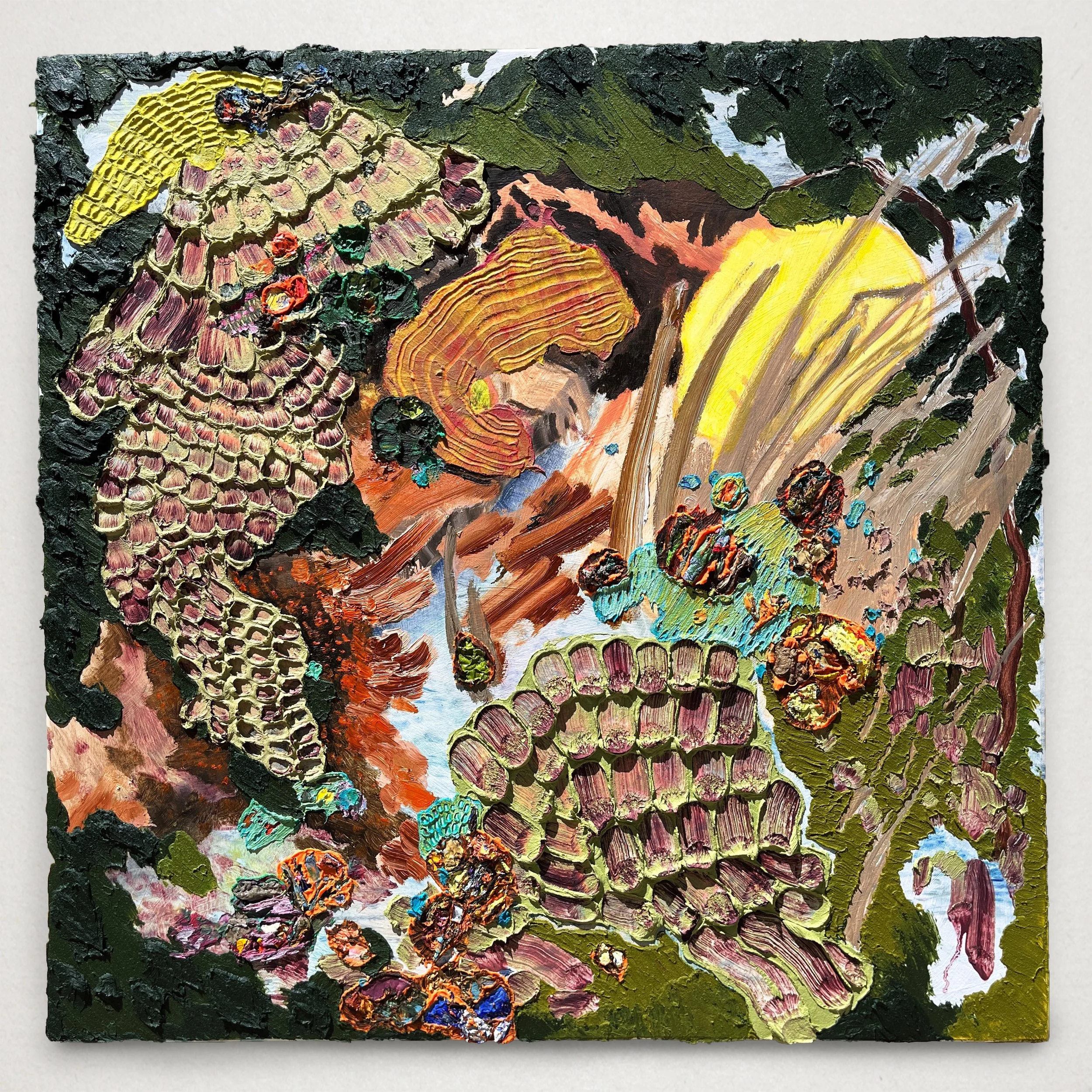 “I have two of your works. Rhyzpod Xylzoa and Viridescent Code. Rhyzpod Xylzoa reminded me of a deconstructed Goya’s The Colossus, sad lost, and torn apart. I thought Viridescent Code looked like what Monet would paint in Giverny, if Monet were a character in Ghost in the Shell, dreamlike, fluid and dystopian.“
